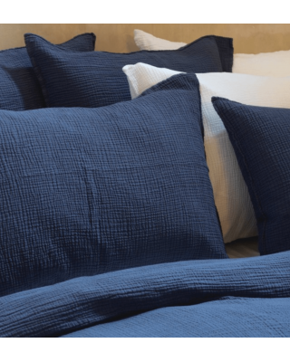 Chariot MAISON D'ETE Taie d'oreiller en double gaze de coton ◦ bleu nuit | 2... Prix 35,00 € Composez votre parure de lit : 1 Housse de couette + 2 taies d'oreiller + 1 drap housse