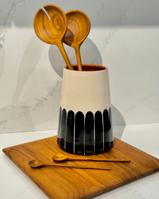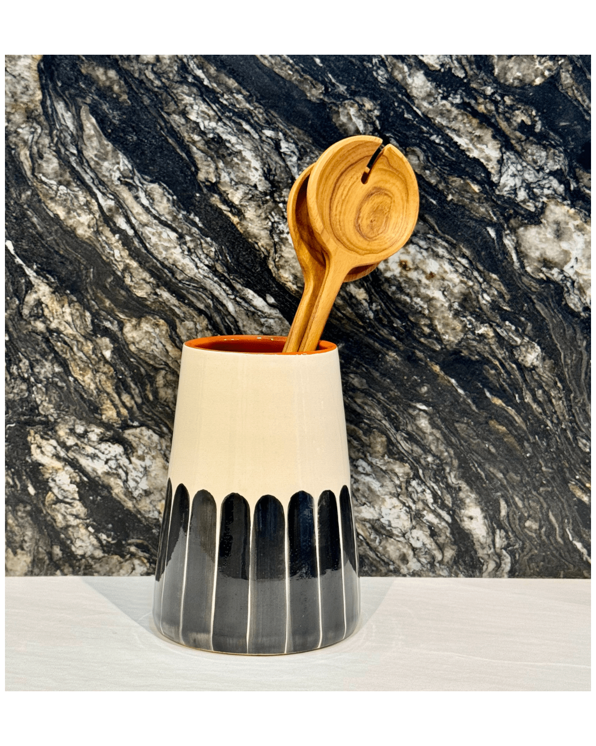 Pièce artisanale. L'intérieur est en terre crue ocre émaillée transparente