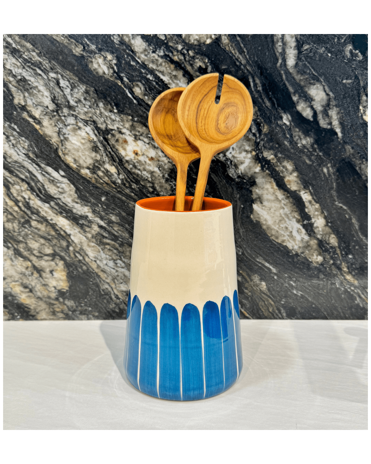 Pièce artisanale. L'intérieur est en terre crue ocre émaillée transparente