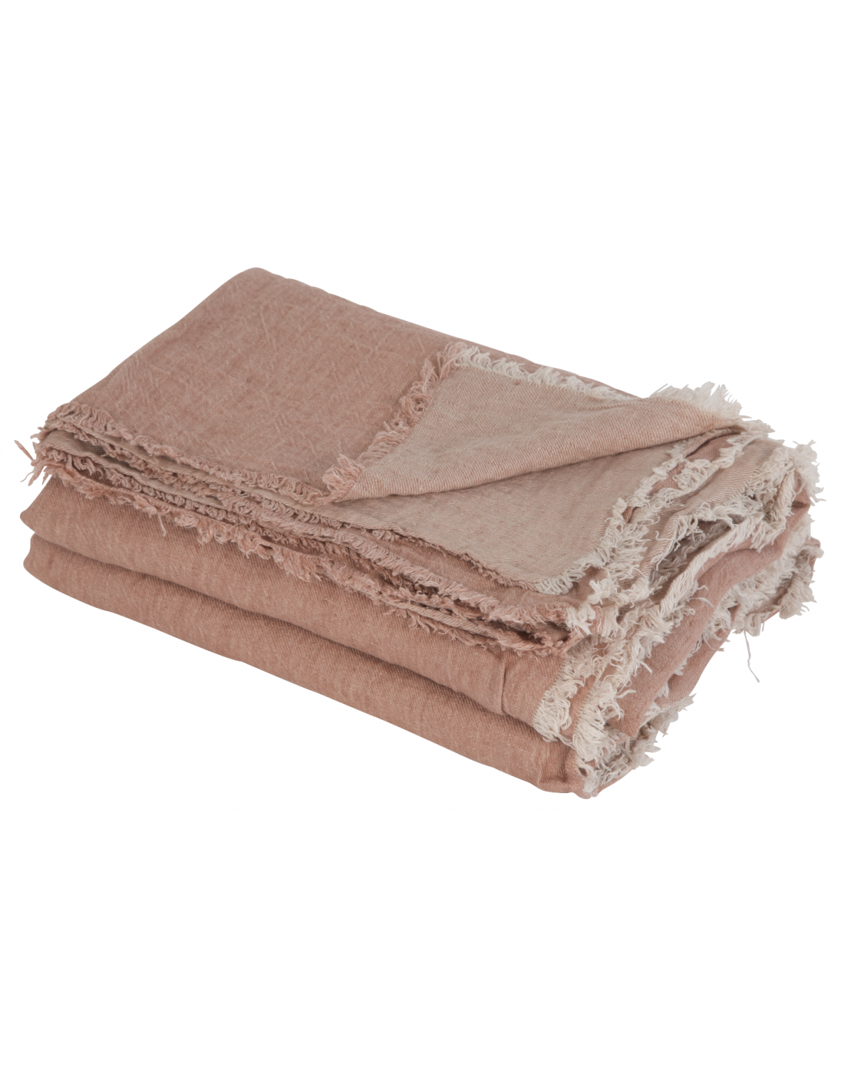Plaid 140x250cm en lin lavé vice versa frangé | Bois de rose