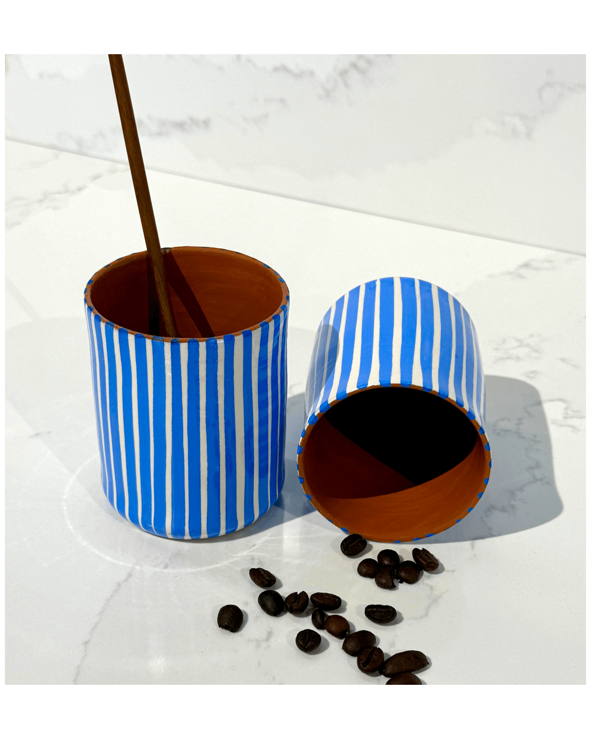 Tasse en céramique fabriquée et peinte à la main par des artisans potiers au Portugal. L'intérieur est en terre crue ocre émaillée transparente.