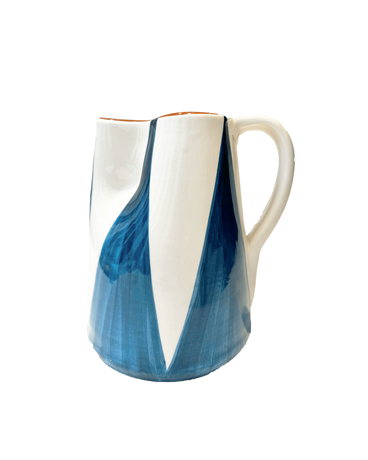 Ce joli pichet, façonné et peint à la main par des artisans potiers au Portugal, est un véritable objet décoratif et objet du quotidien. L’intérieur est en terre cuite ocre, émaillée transparente.