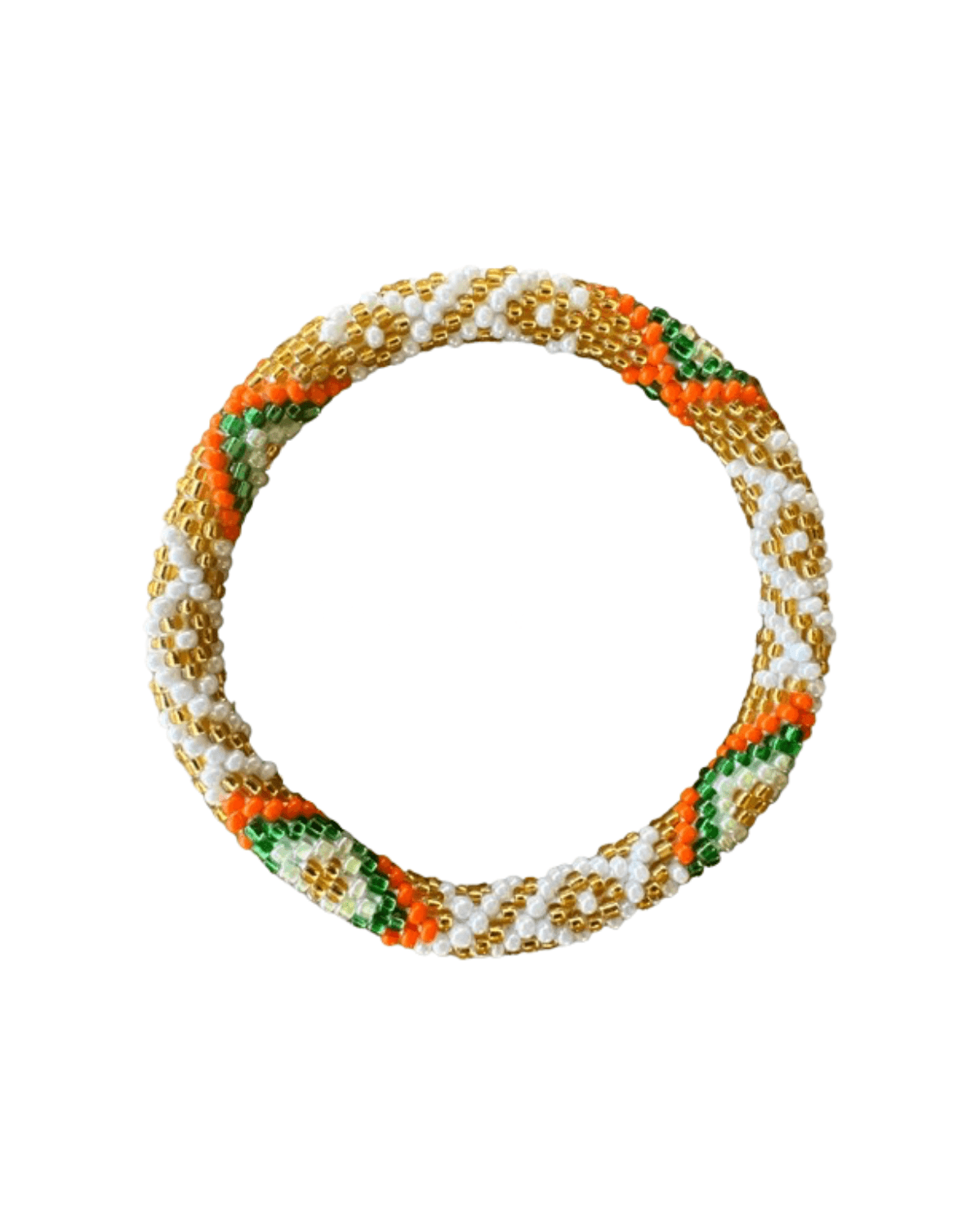 Bracelet en perles de verre | Orange, vert, doré et blanc