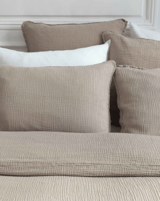 La taie d'oreiller en double gaze de coton vous offre une note de douceur avec sa légèreté et son aspect naturellement gaufrée