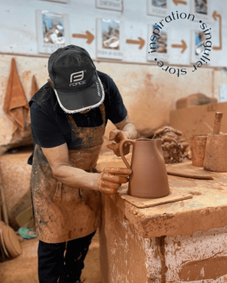 Pièce artisanale. L'intérieur est en terre crue ocre émaillée transparente.