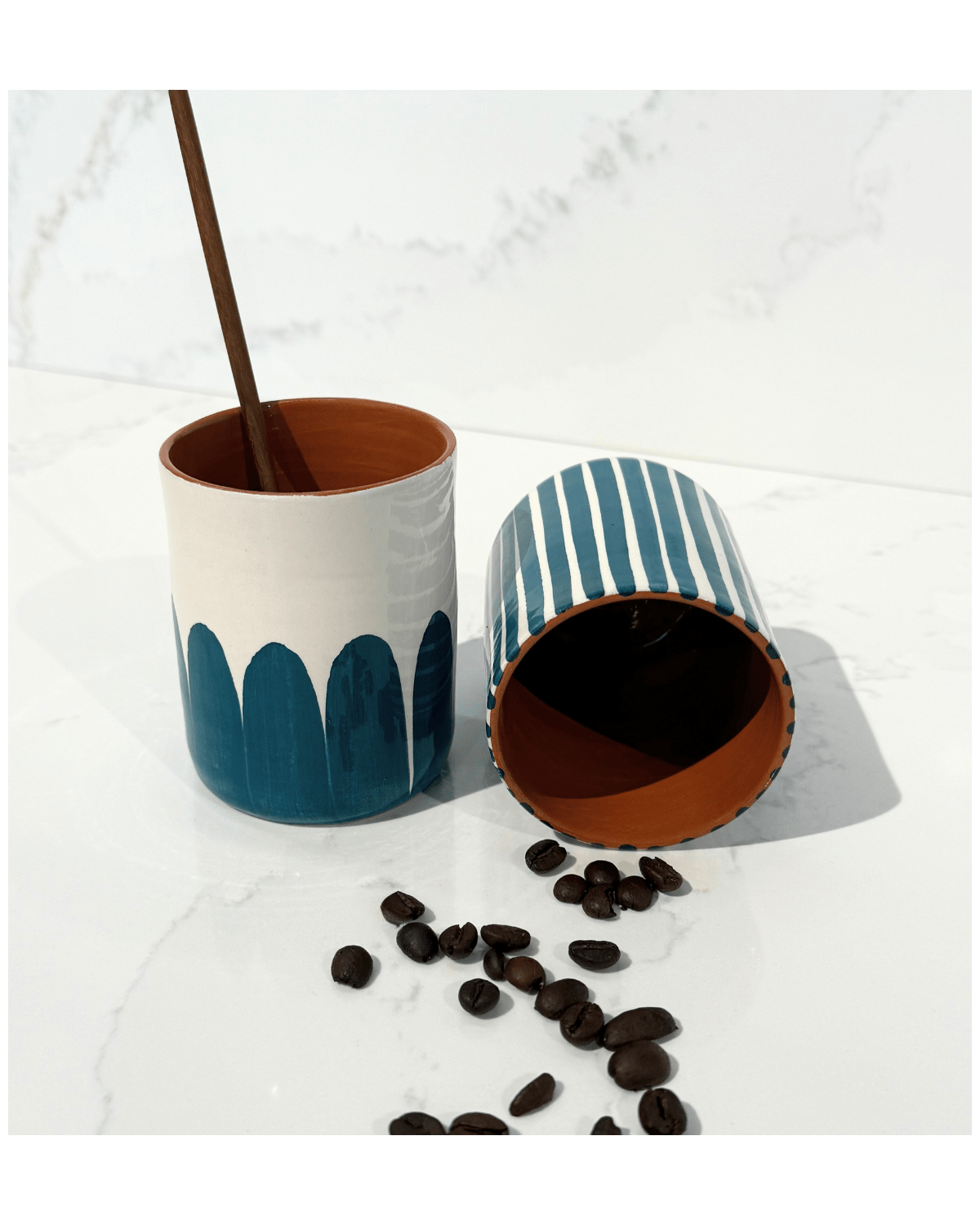 Tasse en céramique fabriquée et peinte à la main par des artisans potiers au Portugal. Disponible en 6 coloris, elle peut faire partie d'un service dépareillé et coloré.