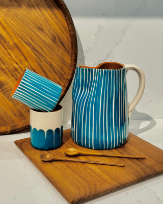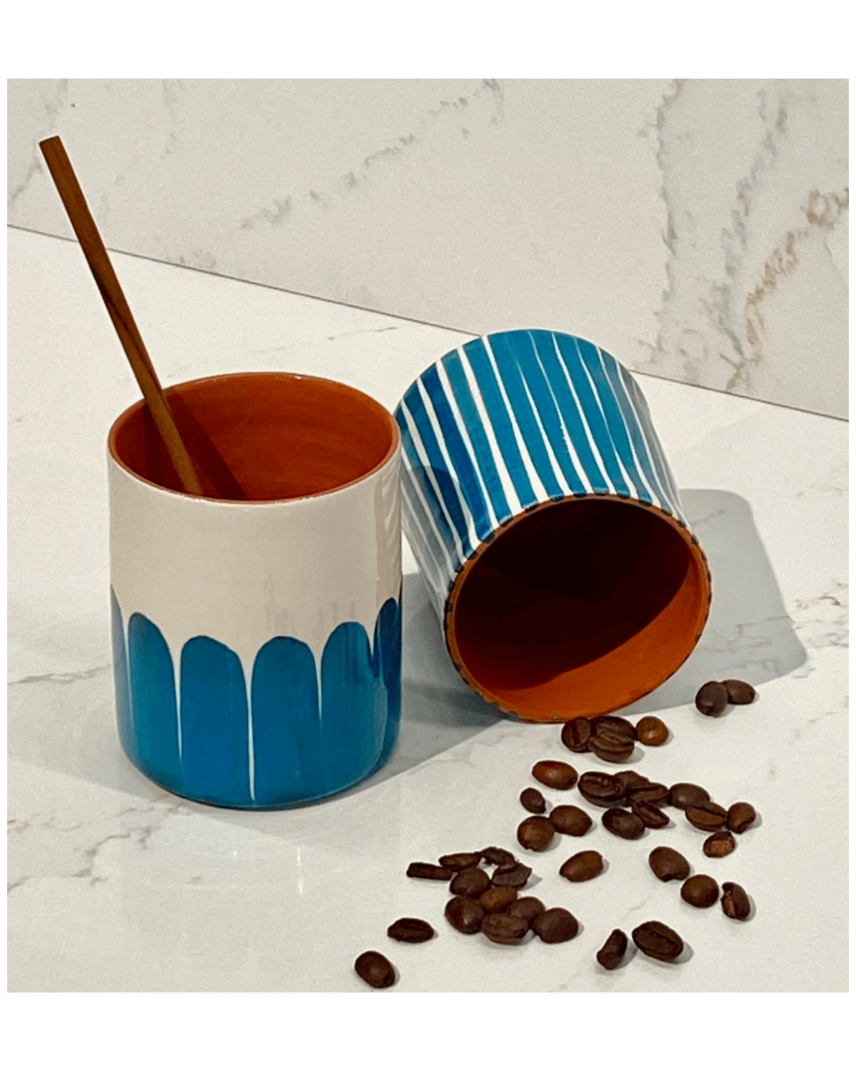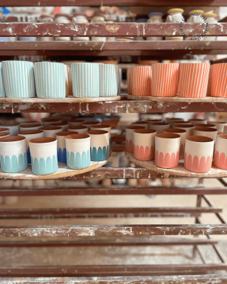 Tasse en céramique fabriquée et peinte à la main par des artisans potiers au Portugal. Disponible en 6 coloris, elle peut faire partie d'un service dépareillé et coloré.