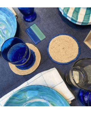 Dessous de verre en raphia naturel | bleu roi