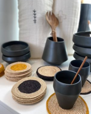 De quoi habiller et protéger vos tables et vos nappes avec du style: dessous de verre ou dessous de bouteille en raphia naturel tissé à main. On craque pour son coté tout doux et la petite fantaisie avec la couleur.
