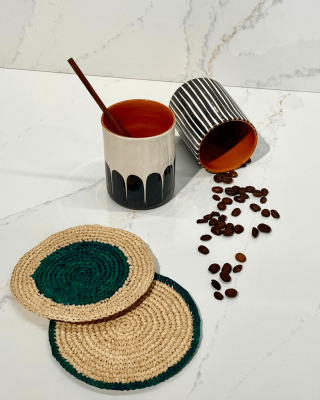 Dessous de verre en raphia naturel | vert
